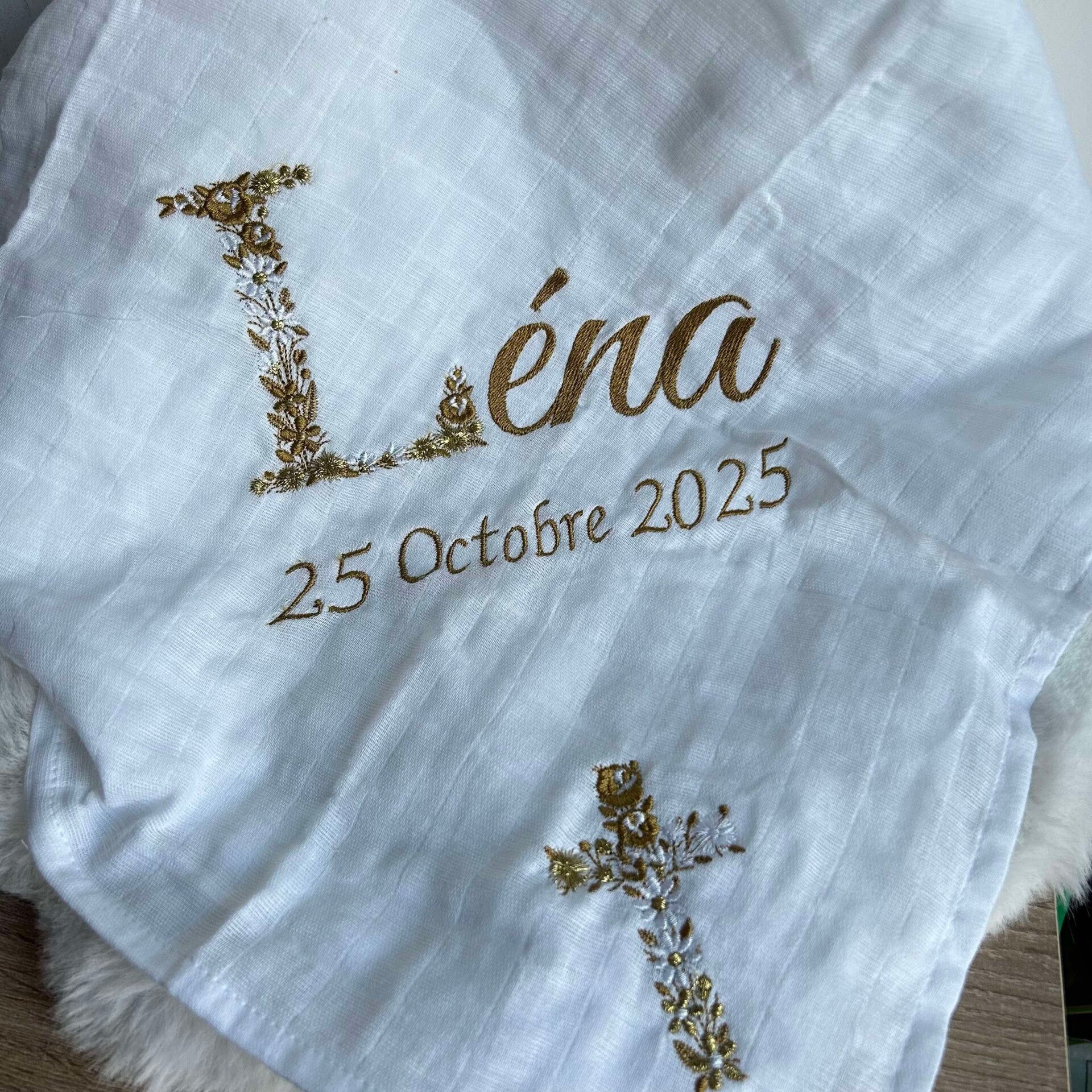 Un joli lange personnalisé pour le baptême de votre enfant.