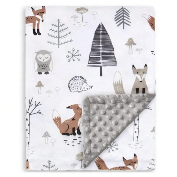 Avec un côté en minky et l'autre à motifs (ou non pour le rose et gris)