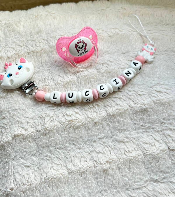 Une jolie attache tétine Marie des Aristochats en silicone.