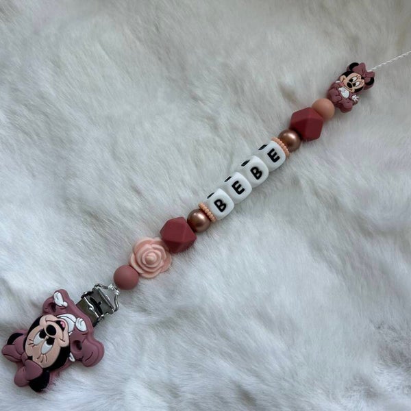 Une jolie attache-tétine dans les tons vieux rose.