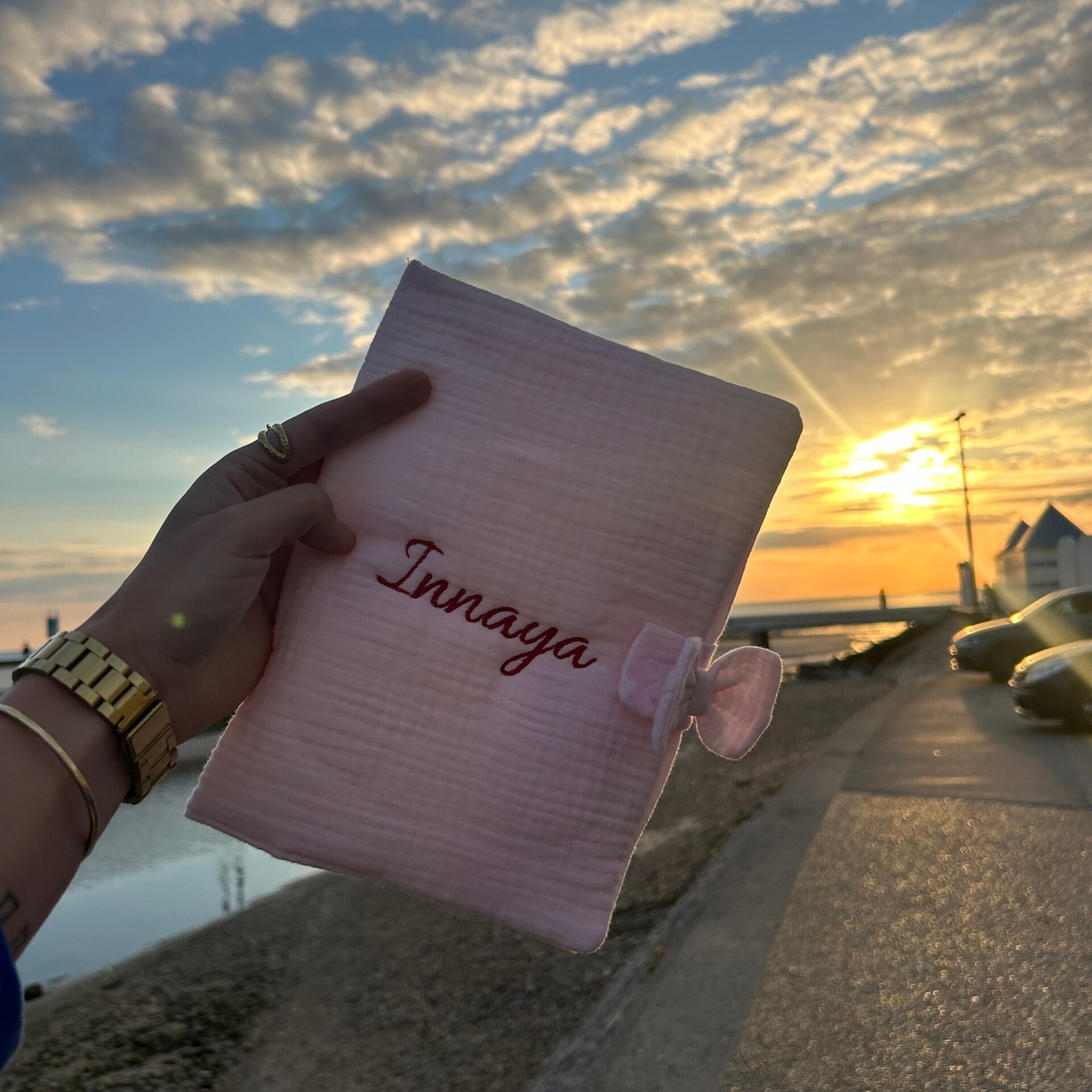 Un joli protège carnet de santé en gaze de coton à personnaliser selon vos envies.
