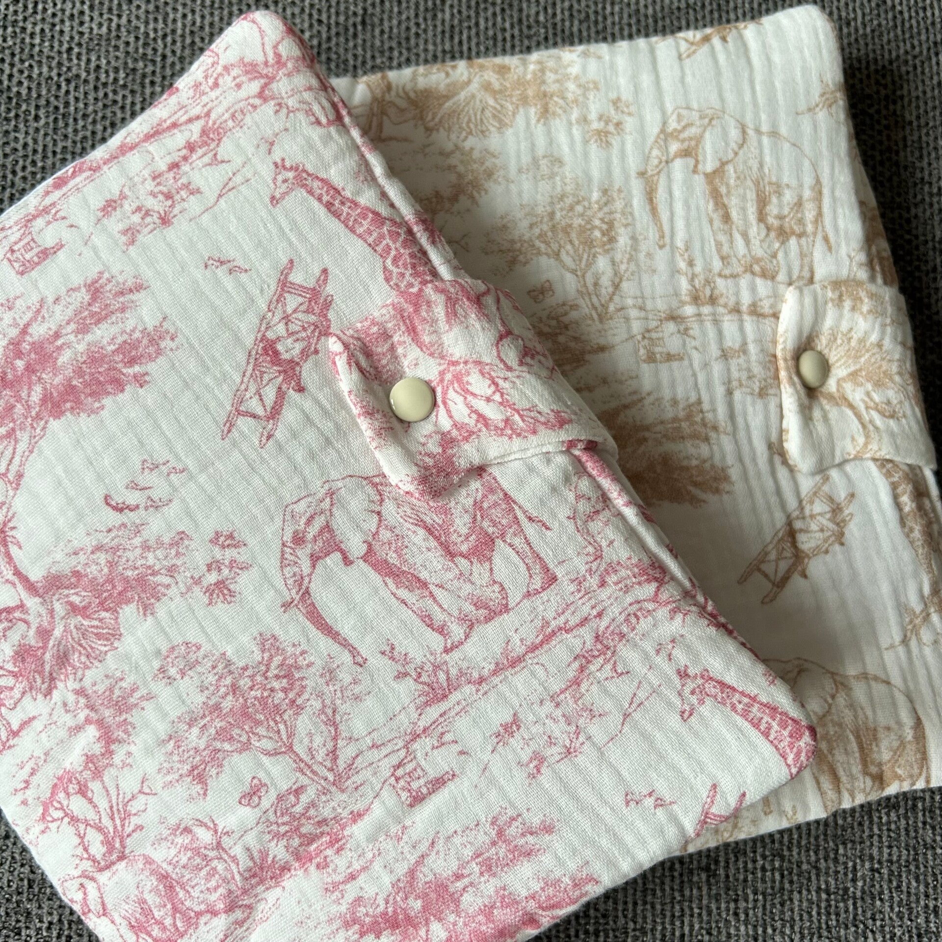 Protège carnet de santé sur le thème safari, en gaze de coton.